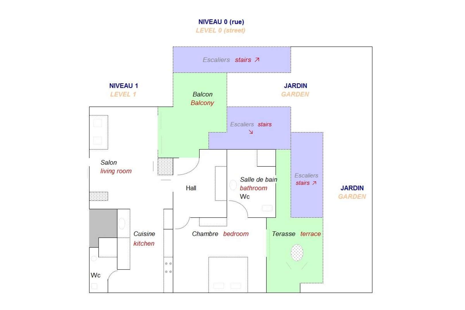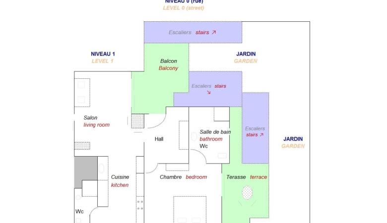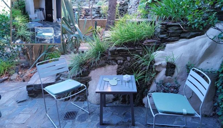 Garten, der in mehrere Terrassen angelegt ist, die mit Entspannungsmöbeln und einem Grill ausgestattet sind). Es gibt einen Parkplatz in der Straße der Residenz, Residenz unter Schranke und eignet sich für ein klassisches Fahrzeug, aber wenig für ein Wohnmobil.