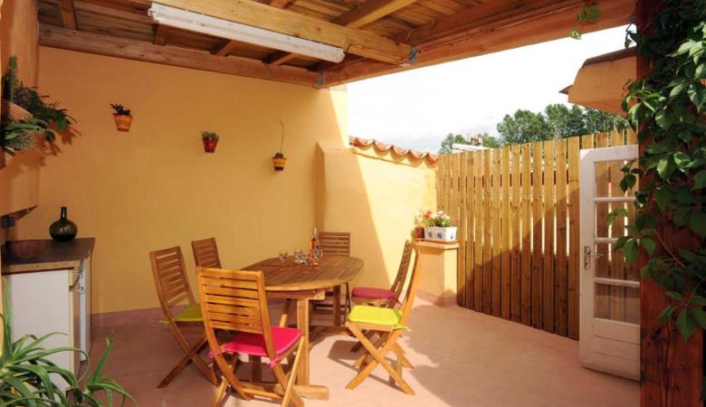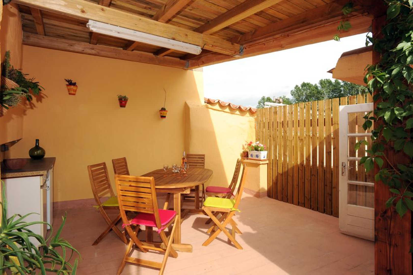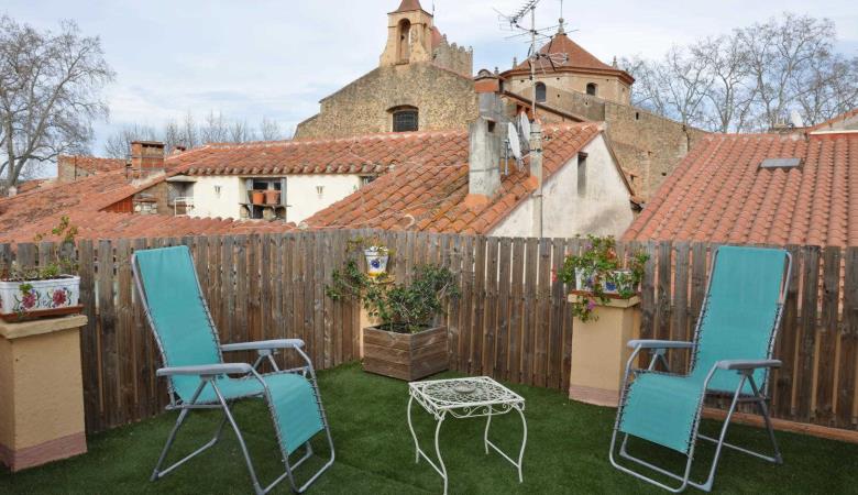Geschützte Terrasse, ohne Gegenüber, mit Blick auf die Dächer der Stadt, ausgestattet mit einem Grill und Gartenmöbeln.