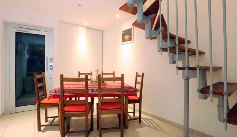 Erdgeschoss: Esszimmer mit ausgestatteter Küchenzeile.