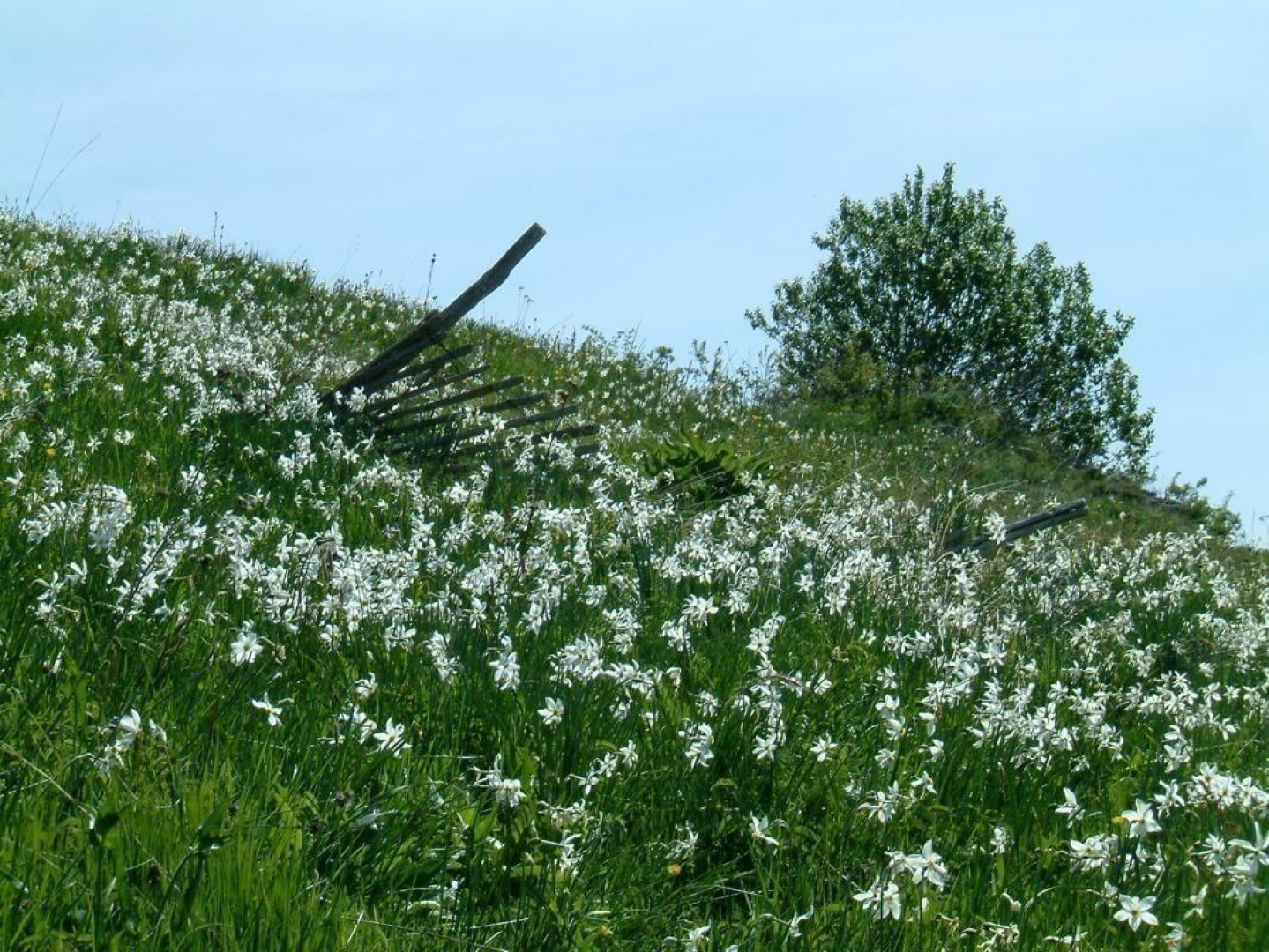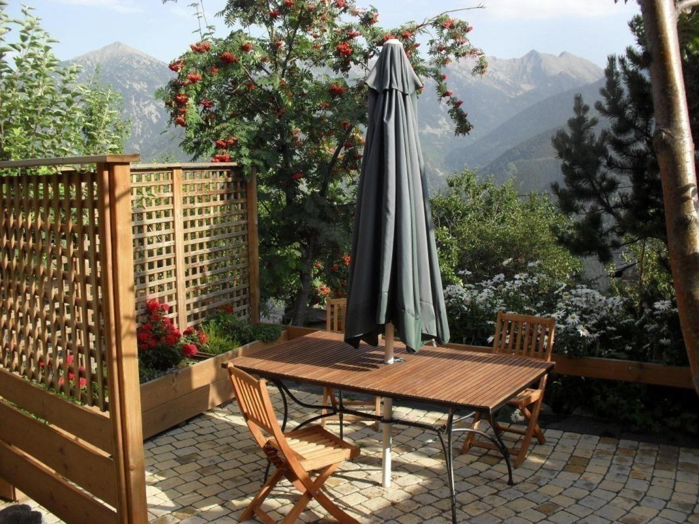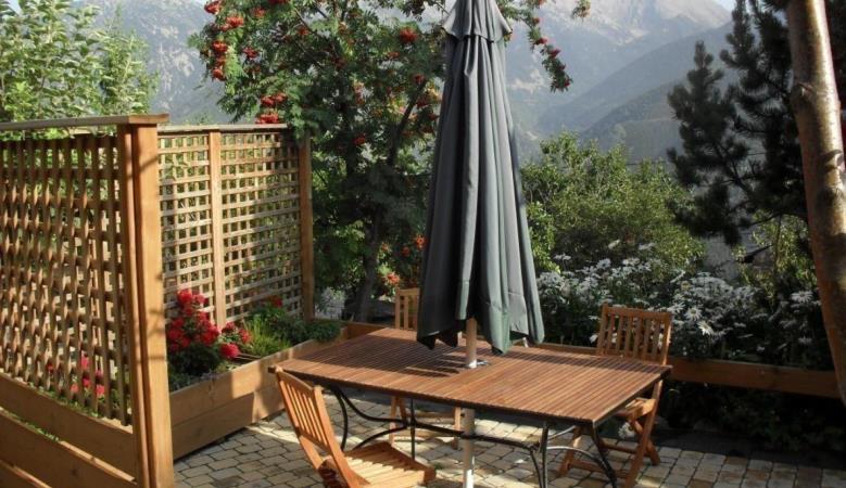 Garten mit Bäumen und schönem Blick auf die Berge, private Terrasse. Privater Parkplatz auf dem Gelände. Warmwasserbereiter, der hauptsächlich von Sonnenkollektoren gespeist wird. Brennholz inklusive.