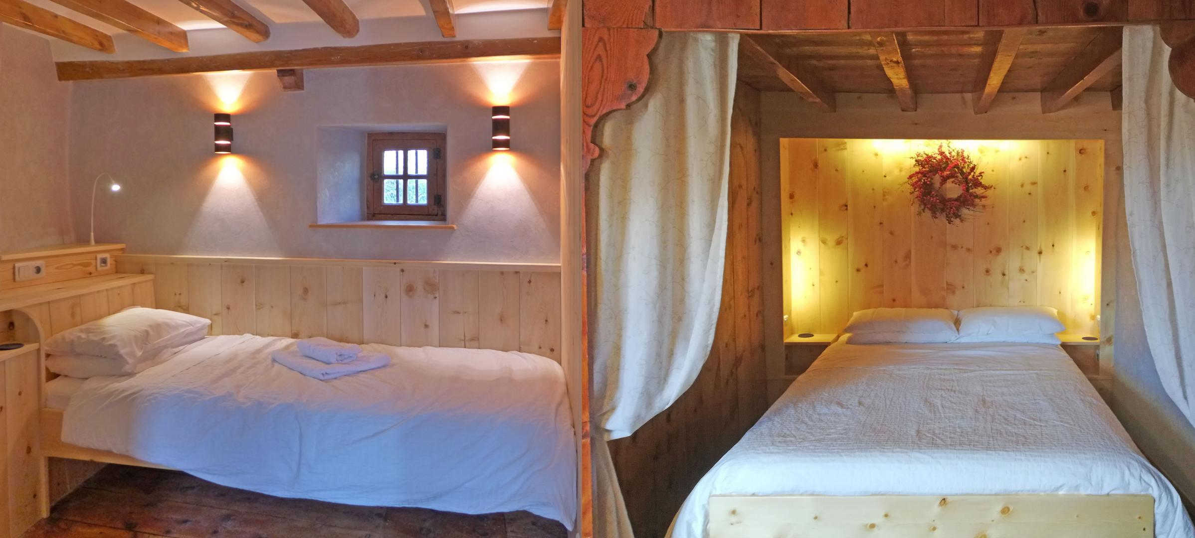 - Schlafzimmer 1 mit 2 Alkoven Berggeist: 1 Bett 140x190 + 1 Bett 90x190.