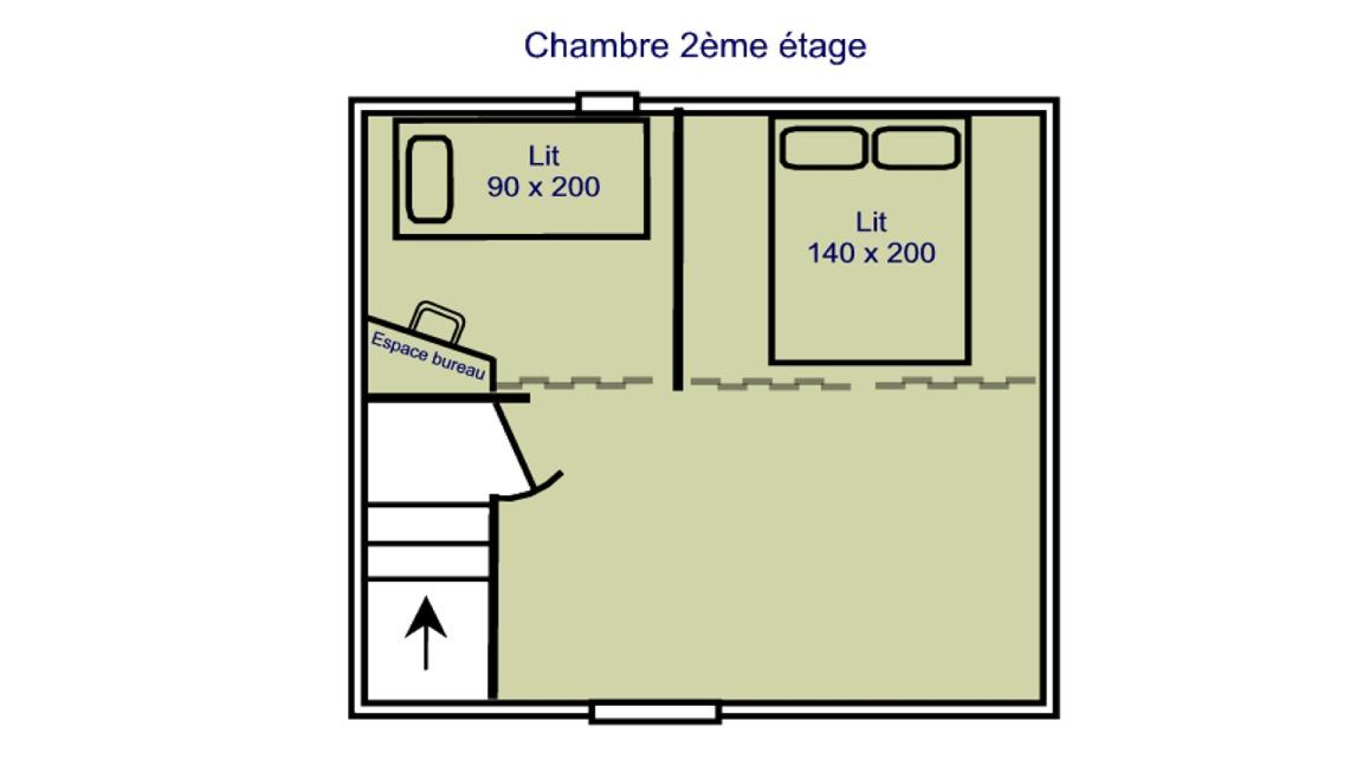 - Schlafzimmer 2 mit Zugang über das erste Schlafzimmer: 1 Bett 160x200, angrenzende Toilette (WC).