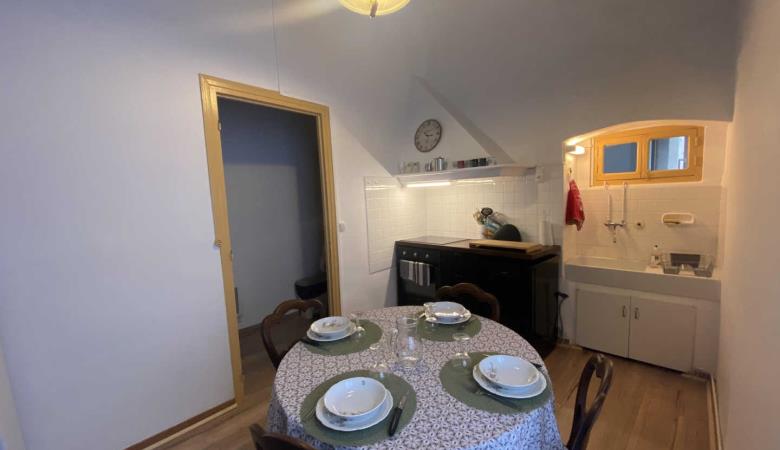 Küche mit Essbereich.