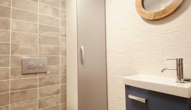 2 Schlafzimmer mit Doppelbett 150 und jeweils einem Badezimmer.