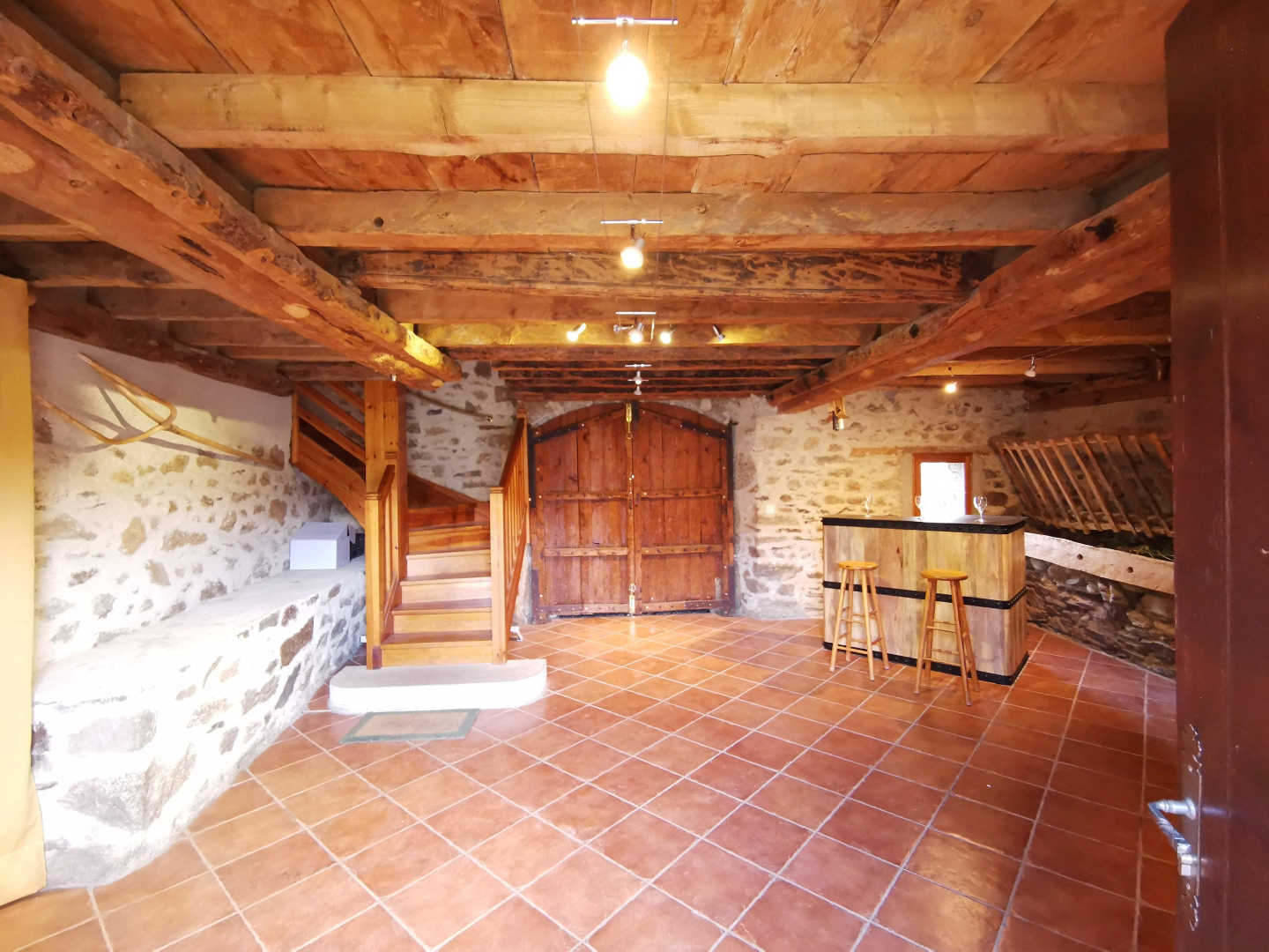 Erdgeschoss: großer Raum zur Aufbewahrung und Entspannung mit einem Rudergerät ausgestattet