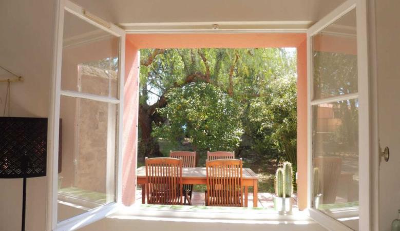Draußen können Sie auf der Terrasse die Ruhe der Umgebung genießen.