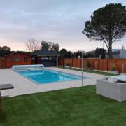 Im Erdgeschoss: ausgestattete Küche (Waschmaschine, Geschirrspüler, Kühlschrank, Elektroherd, Mikrowelle), Essbereich und Sitzecke mit Fernseher. Im ersten Stock: Badezimmer, Schlafzimmer mit Doppelbett, Schlafzimmer mit zwei Einzelbetten und Balkon. Im zweiten Stock: Badezimmer, Schlafzimmer mit Doppelbett und Balkon.