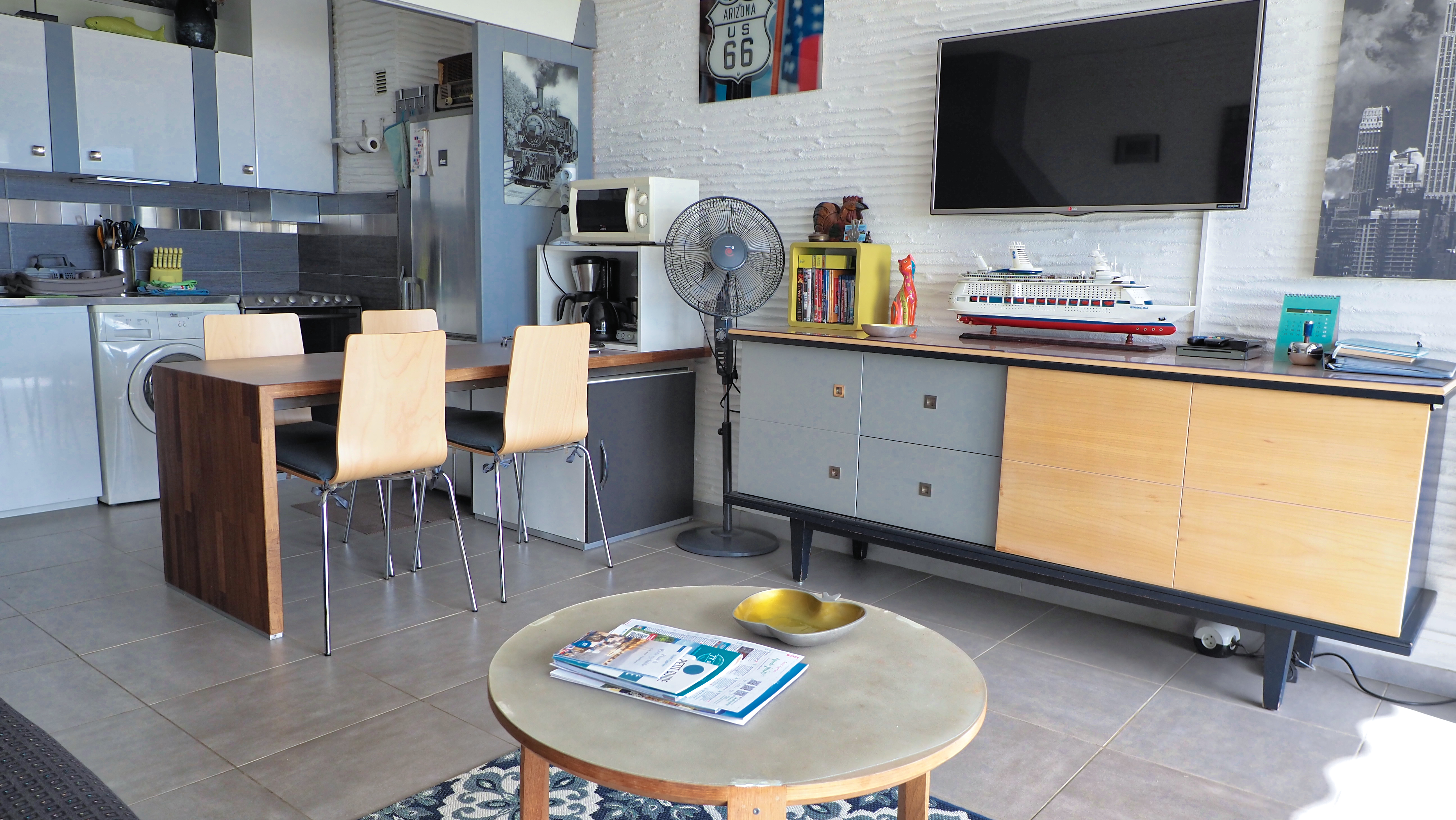 * Vollständig ausgestattetes Wohn-/Esszimmer/Küchenecke (nicht umwandelbares Sofa).