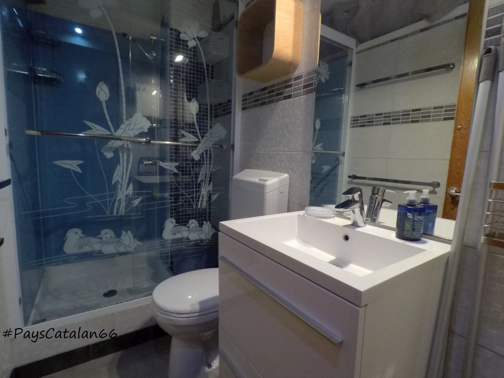 * Dusche, Waschbecken und WC